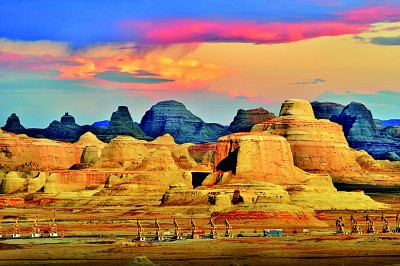 新疆克拉瑪依市烏爾禾區世界魔鬼城的“磕頭機”森林。克拉瑪依市委宣傳部供圖