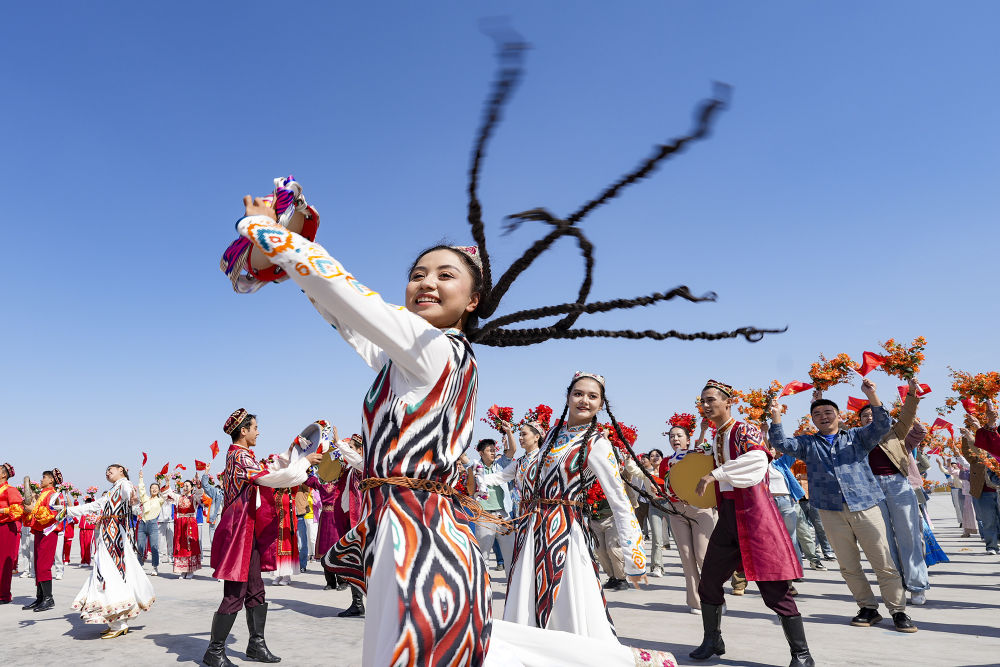 天山雪松根連根,各族人民心連心。廣袤的新疆大地上,各族羣眾賡續團結基因,民族團結之花處處綻放,鑄牢中華民族共同體意識日益深入人心,“像石榴籽一樣緊緊抱在一起”已經成為新疆民族團結的生動實踐和真實寫照。