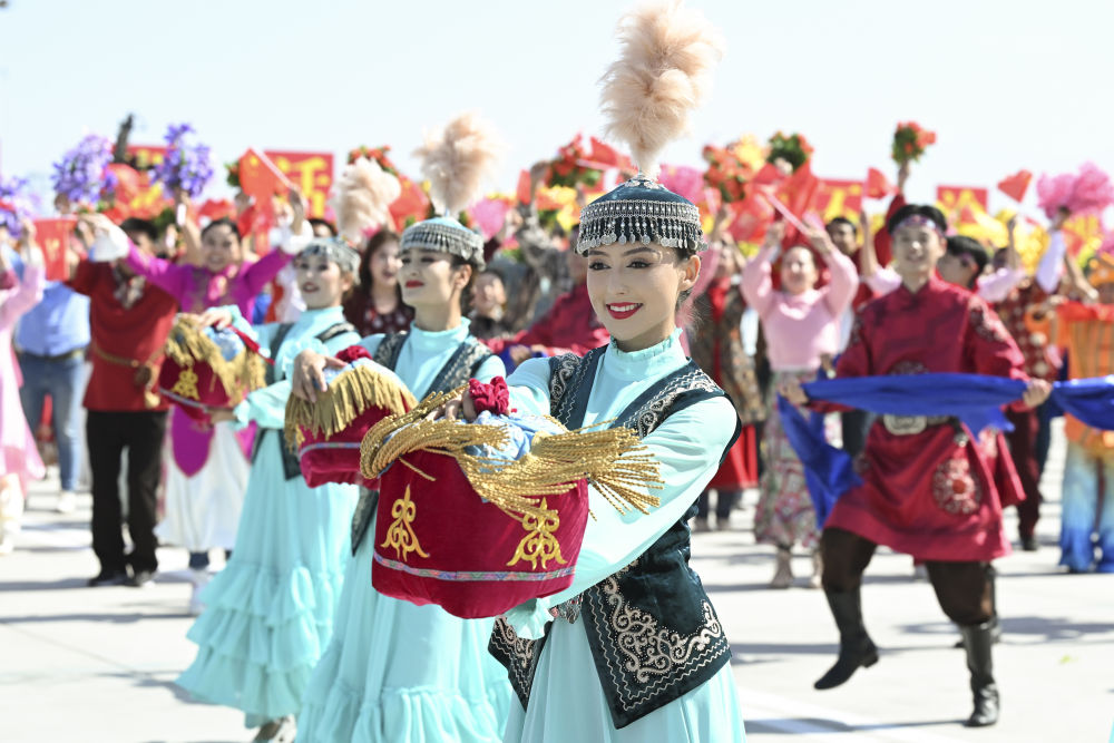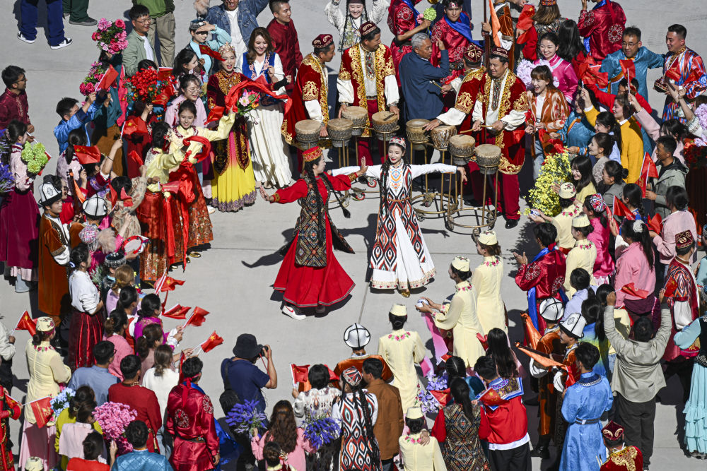 新華社記者的鏡頭裏,各族兒女簇擁在一起,歡笑在一起;明豔的服飾、熱烈的歌舞,無不展現出團結與奮進的力量。