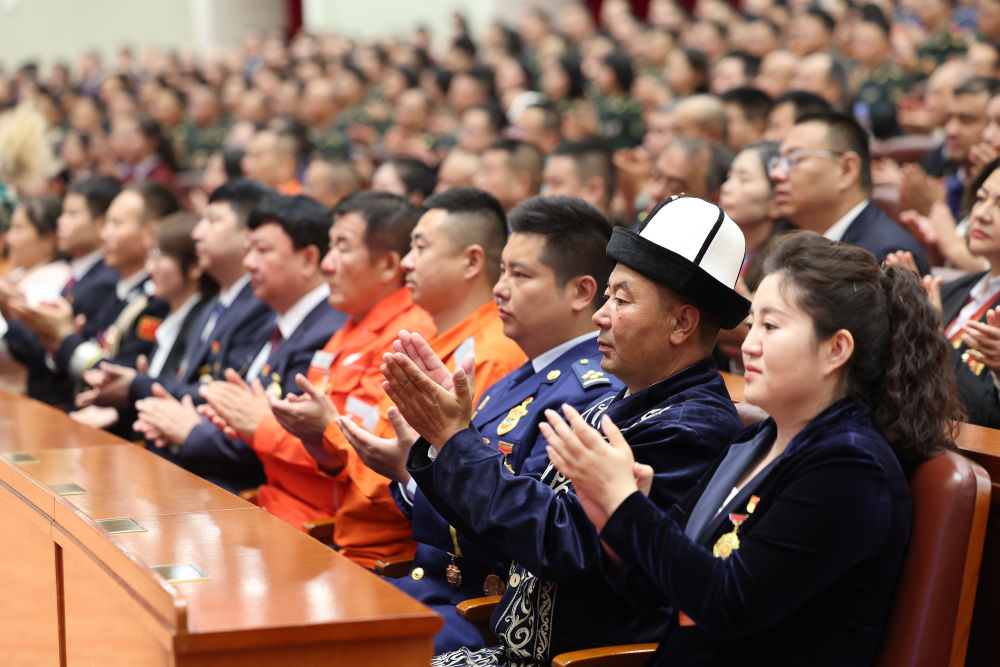 25日上午,習近平總書記在烏魯木齊市出席新疆維吾爾自治區成立70週年慶祝大會,同新疆各族各界幹部羣眾代表一道,熱烈慶祝新疆維吾爾自治區成立70週年。