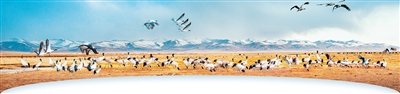 長江源地區分佈着大面積的濕地,這些天然濕地為黑頸鶴的繁衍生息提供了良好環境。