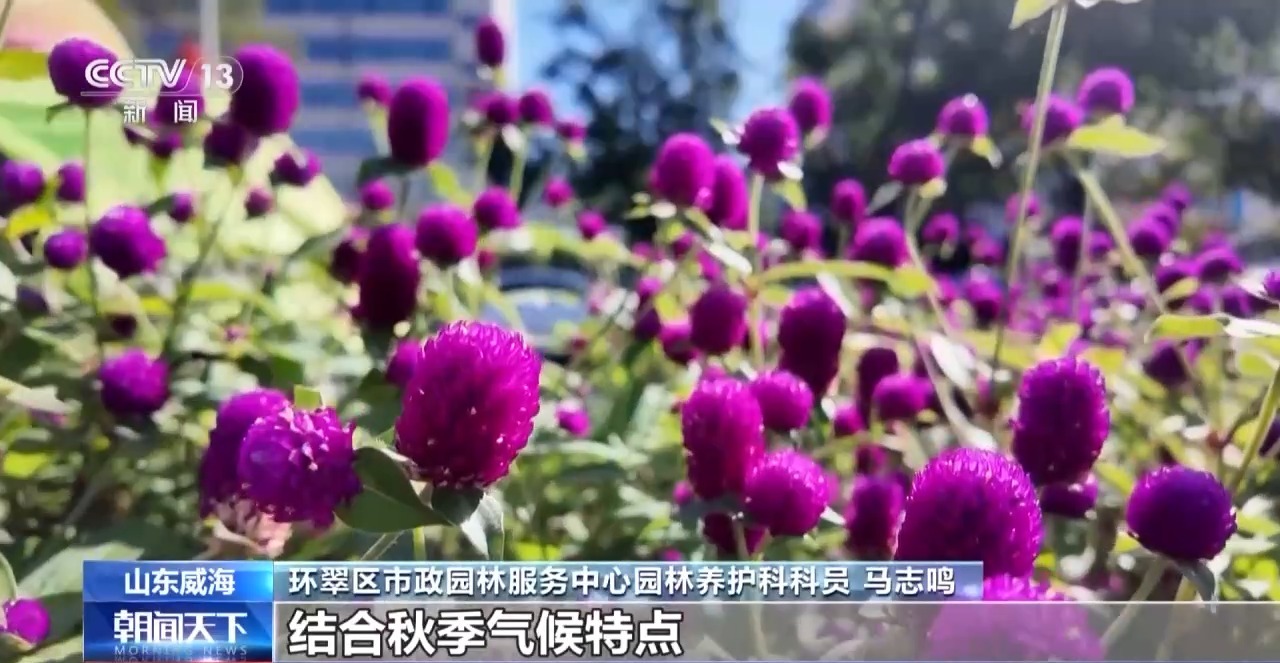 威海**環翠區市政園林服務中心園林養護科科員 馬志鳴:結合秋季氣候特點,優選雞冠花、千日紅、彩葉草等色彩明豔、適應性強的品種,通過色彩漸變和組景造型的排列,形成明快動感的視覺效果。
