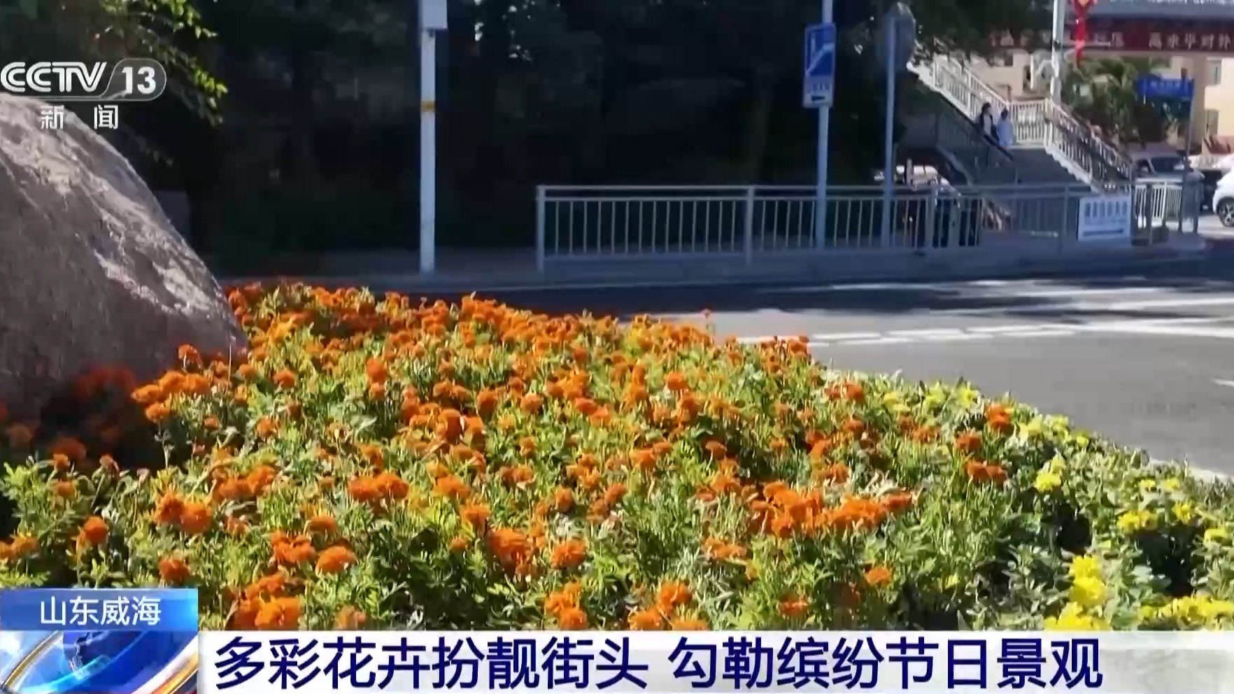 在山東省威海市,當地通過科學搭配花卉品種,營造花團錦簇的國慶氛圍。在市區各路段,園林工人正忙着搬運花箱。各色當季花卉被精心排布在街頭綠化區,勾勒出繽紛多彩的節日景觀。
