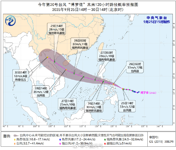 預計9月28日至10月1日,受“博羅依”影響,華南、江南西部和南部、雲南南部等地有大到暴雨,局地大暴雨或特大暴雨。