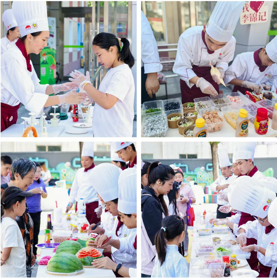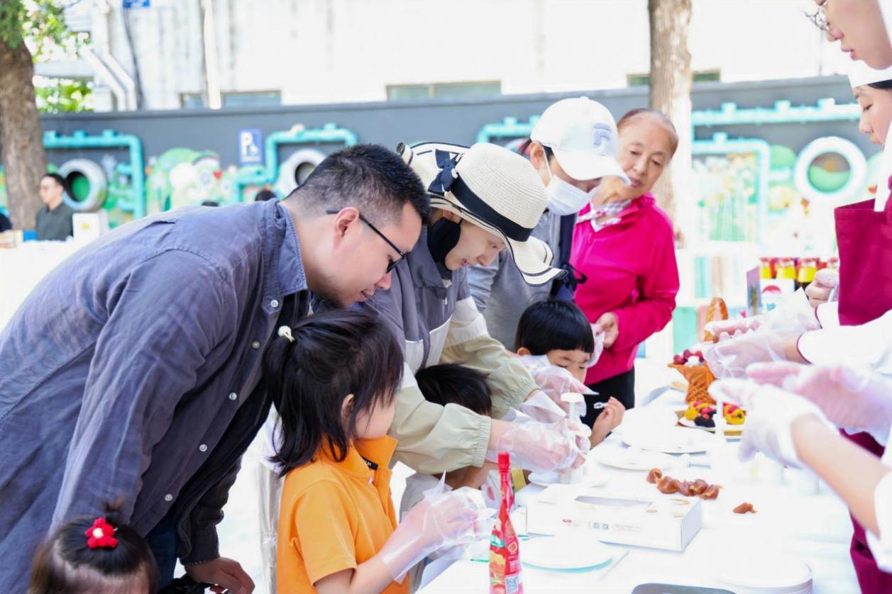 李錦記希望廚師團隊的現場互動更讓市集充滿煙火氣。年輕廚師們不僅用蔬菜搭配特色醬料,烹製出低糖低鹽的涼拌菜供居民免費品嚐。還特別設置了“中秋月餅製作區”,在希望廚師的指導下,居民和小朋友們動手製作低糖冰皮月餅,這一環節不僅讓居民們享受到了DIY的樂趣,更讓中秋團圓多了份健康意義。