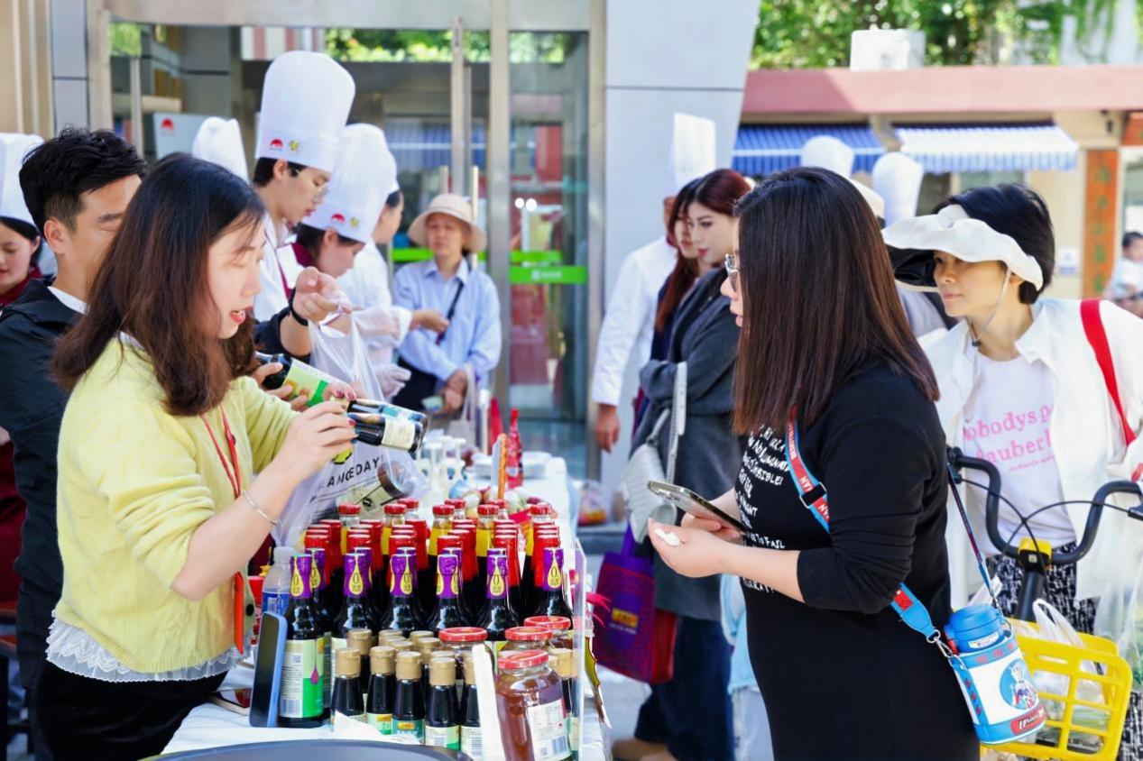 活動當天,户外綠色市集成為焦點之一。綠色食品區展示了李錦記薄鹽系列醬料產品,工作人員耐心地為居民講解每一款產品的使用方法與搭配建議,“中秋家宴用對醬料,既能吃得健康,還能為環保出份力。”工作人員一邊向居民演示醬料的搭配技巧,一邊講解“綠色飲食”在節日聚餐中的實踐方法,讓環保理念融入團圓場景。