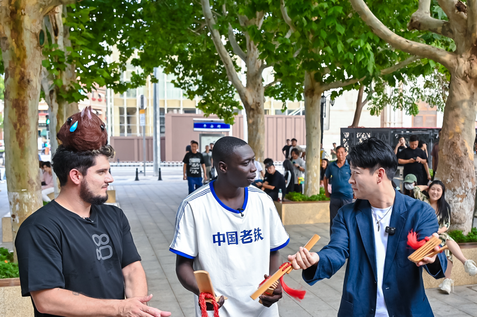 天津站的馬可波羅廣場上,“無語哥”身着印着“中國老鐵”的T恤,與市民同唱意大利民歌;相聲演員曹雲金教他用天津話問“吃嘛好”,重慶站中達人“毒角SHOW”帶他體驗刮痧。這些互動催生了跨越國界的情感共鳴,而“奧力給”“巴適的板”等方言熱詞的傳遞,更成為連接不同文化的紐帶,生動詮釋了“幽默無國界”的內涵。