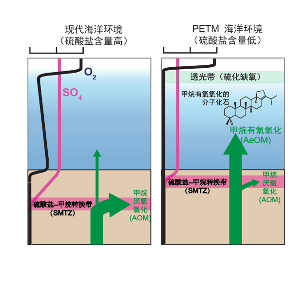 現代海洋中,約90%的甲烷會被沉積物中的微生物在無氧條件下利用,即以硫酸鹽作為“燃料”,高效轉化甲烷能源,同時產生鹼性物質,緩解海洋酸化,這個過程就像“慢燃發電廠”。