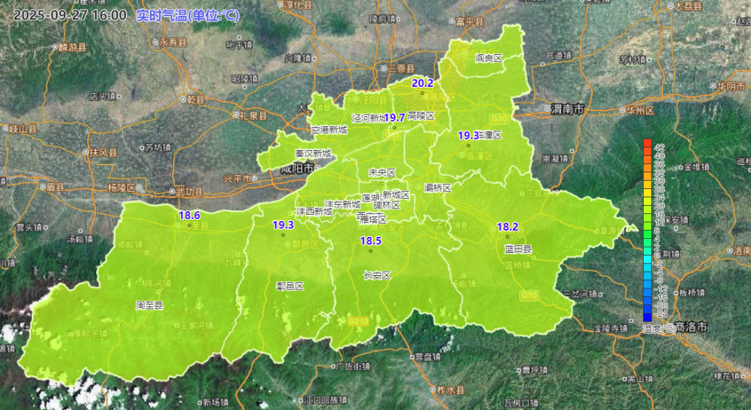 9月27日16時西安市氣温實況色斑圖