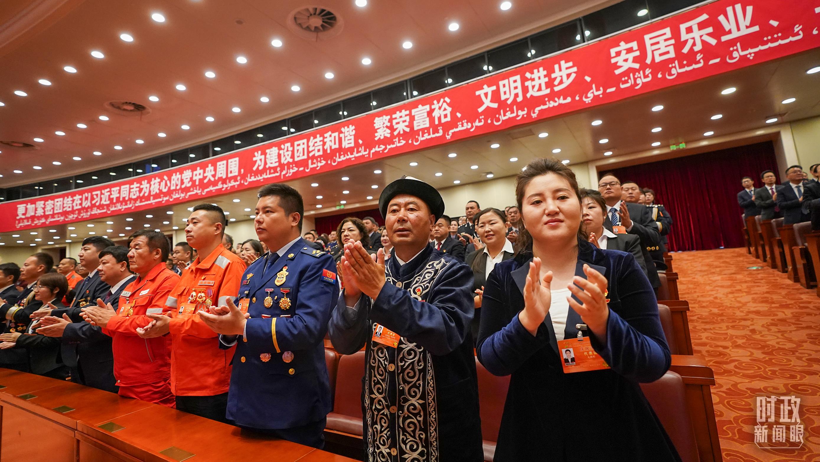 《時政新聞眼》注意到,出席當天大會的除了黨和國家領導人、新疆各族各界幹部羣眾代表,還有國家勳章和國家榮譽稱號、“七一勳章”“八一勳章”獲得者和先進模範代表等。他們既是新疆的建設者,也是新疆發展的見證者。