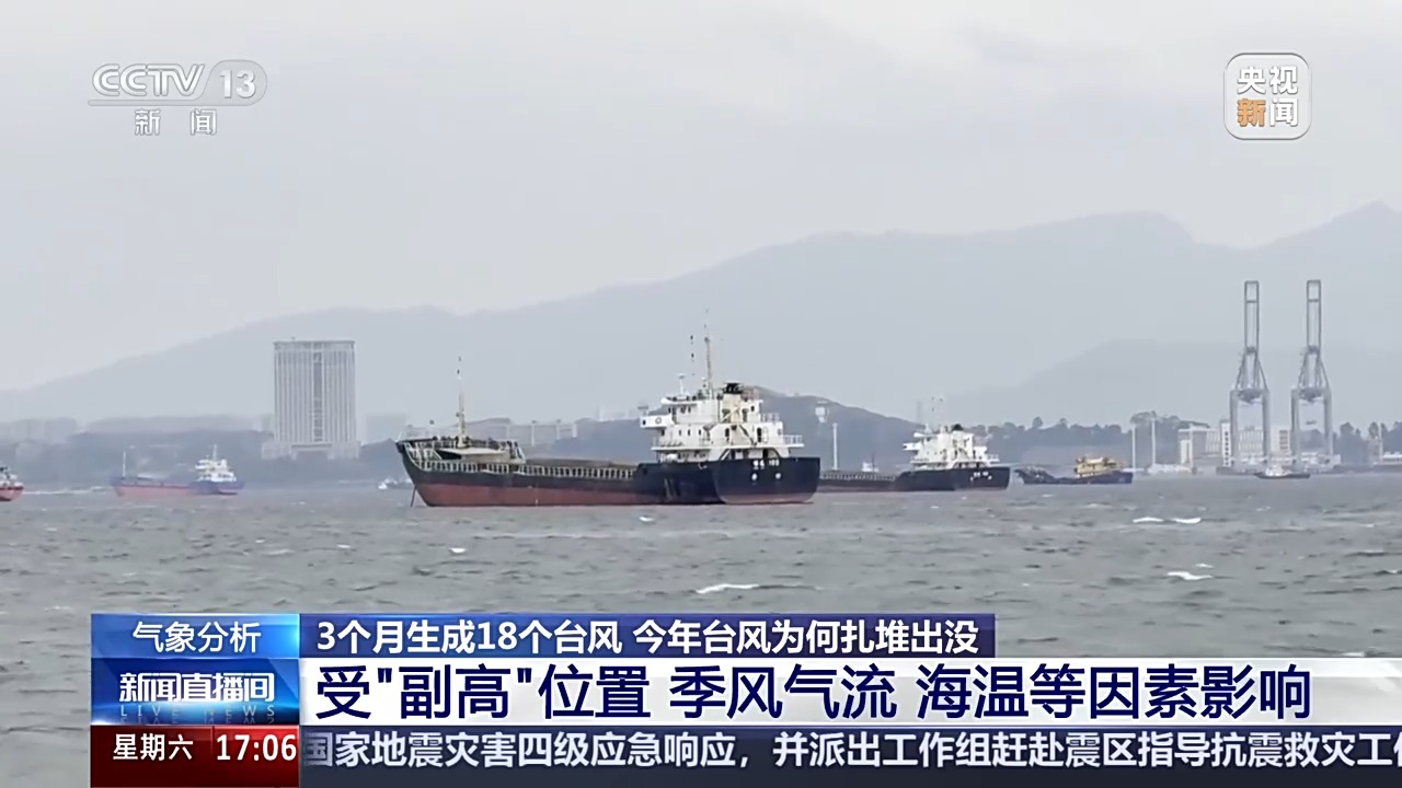 為何颱風扎堆出現?專家介紹,這種情況主要受副熱帶高壓位置、季風氣流、海温等方面的因素影響。今年7月和9月,副熱帶高壓較常年總體偏強、位置多偏北偏西,為颱風形成及活躍提供空間;海表面温度高,利於颱風生成及發展;颱風在副熱帶高壓環流邊緣的低風切變區域活動,垂直方向的風速和風向變化相對較少,利於颱風維持;副熱帶高壓南側對流活躍時,形成的熱帶擾動較多,也可能出現颱風接連生成的情況。