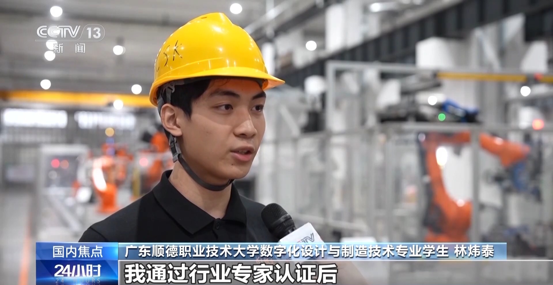 *廣東順德職業技術大學數字化設計與製造技術專業學生 林煒泰:*學習效率很高,我通過行業專家認證後,就直接來到公司這個產線機器人編程崗進行實習,我現在每個月的實習工資是4000元左右。