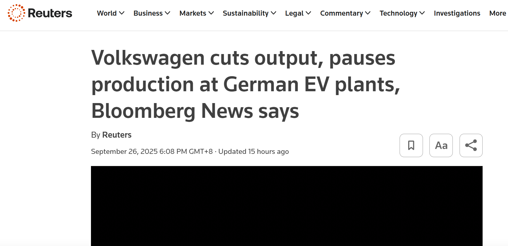 大眾德國兩家電動車工廠將短期停產,部分車型交付受影響