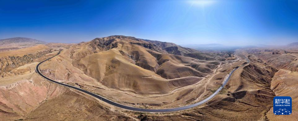 這是9月10日在塔吉克斯坦哈特隆州拍攝的中塔公路一期路段(無人機全景照片)。 新華社記者 李任滋 攝