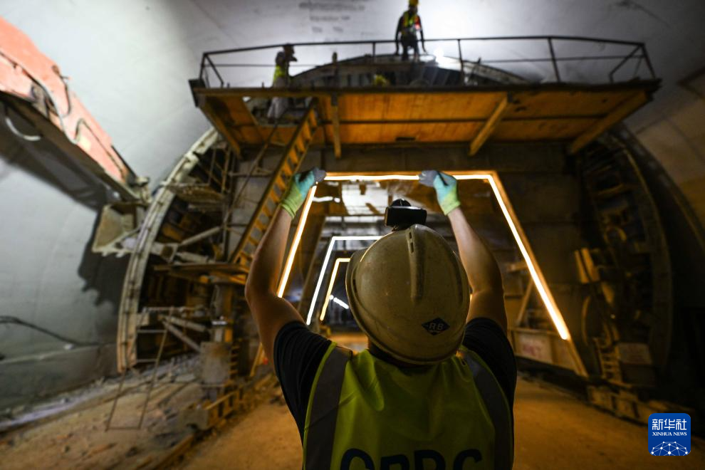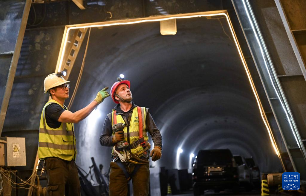9月11日,工人在塔吉克斯坦卡拉依洪姆村附近的中塔公路二期工程1號隧道施工現場工作。 新華社記者 李任滋 攝