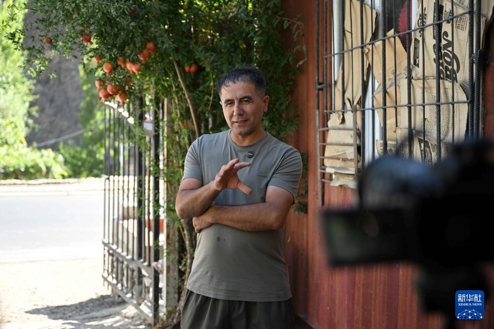9月11日,在塔吉克斯坦卡拉依洪姆村附近,村民基什瓦爾接受新華社記者採訪。 新華社記者 李任滋 攝