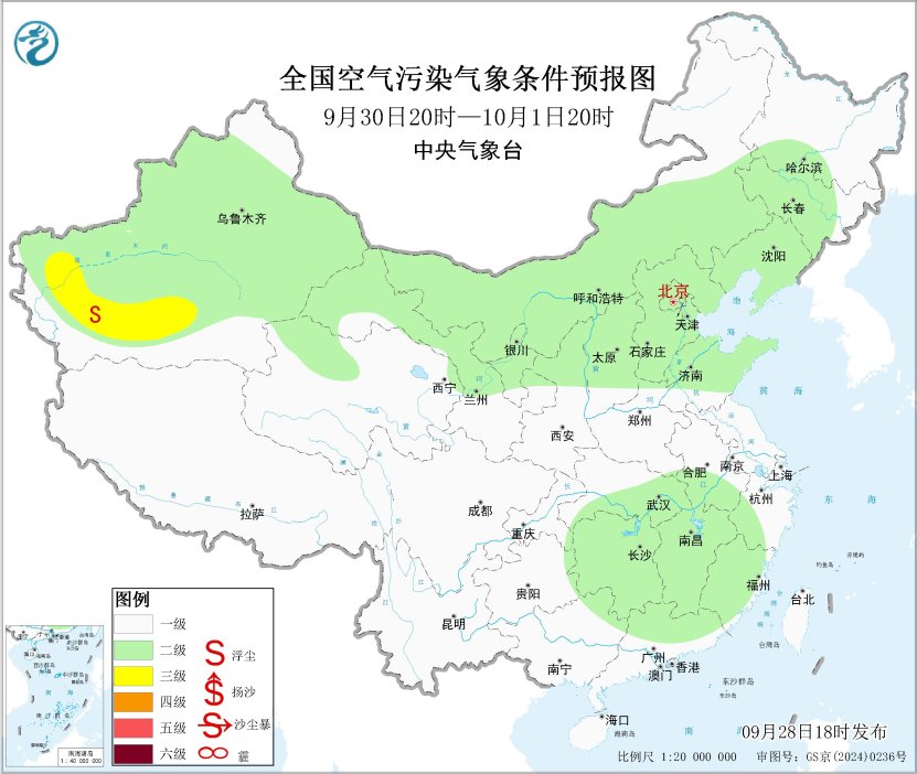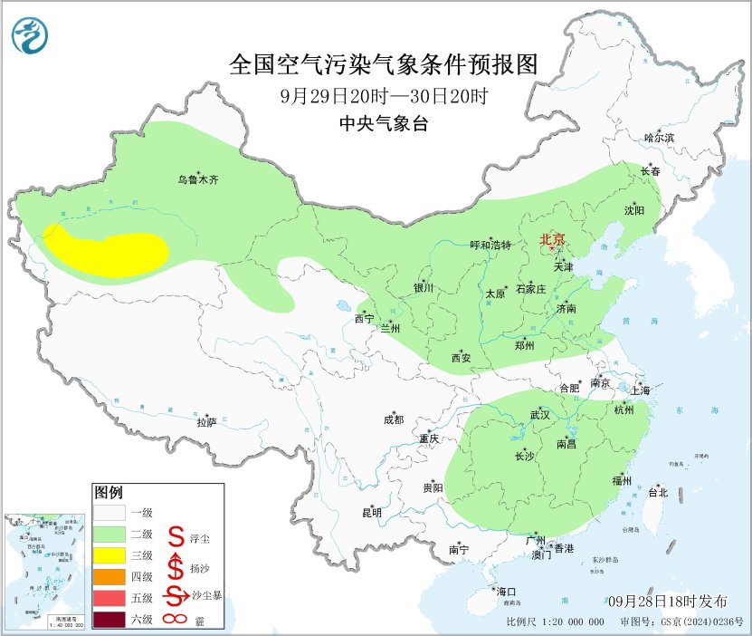 未來一週,全國大部地區大氣擴散條件較好,無明顯霾天氣,但新疆南疆盆地多揚沙或浮塵天氣。此外,28日夜間至29日上午,山西南部、山東西北部等地的部分地區有大霧。