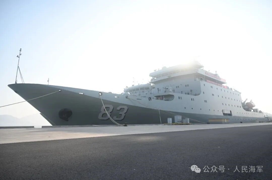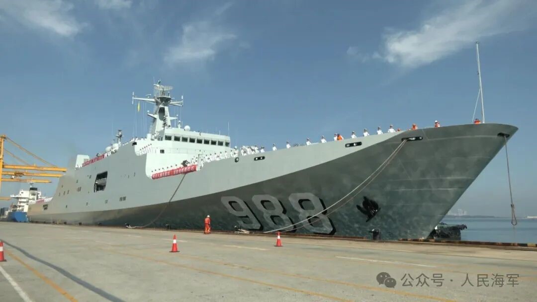 海軍戚繼光艦,舷號83,是我國自主設計建造的大型海軍訓練艦,滿載排水量9000餘噸,是海軍噸位最大、現代化水平最高的專業訓練艦。海軍沂蒙山艦,舷號988,屬071型船塢登陸艦,正常排水量約19000餘噸,具有噸位大、裝載能力強、續航里程遠等突出特點,可擔負快速、立體、機動登陸作戰,可執行輸送救災物資、提供醫療救援等使命任務。