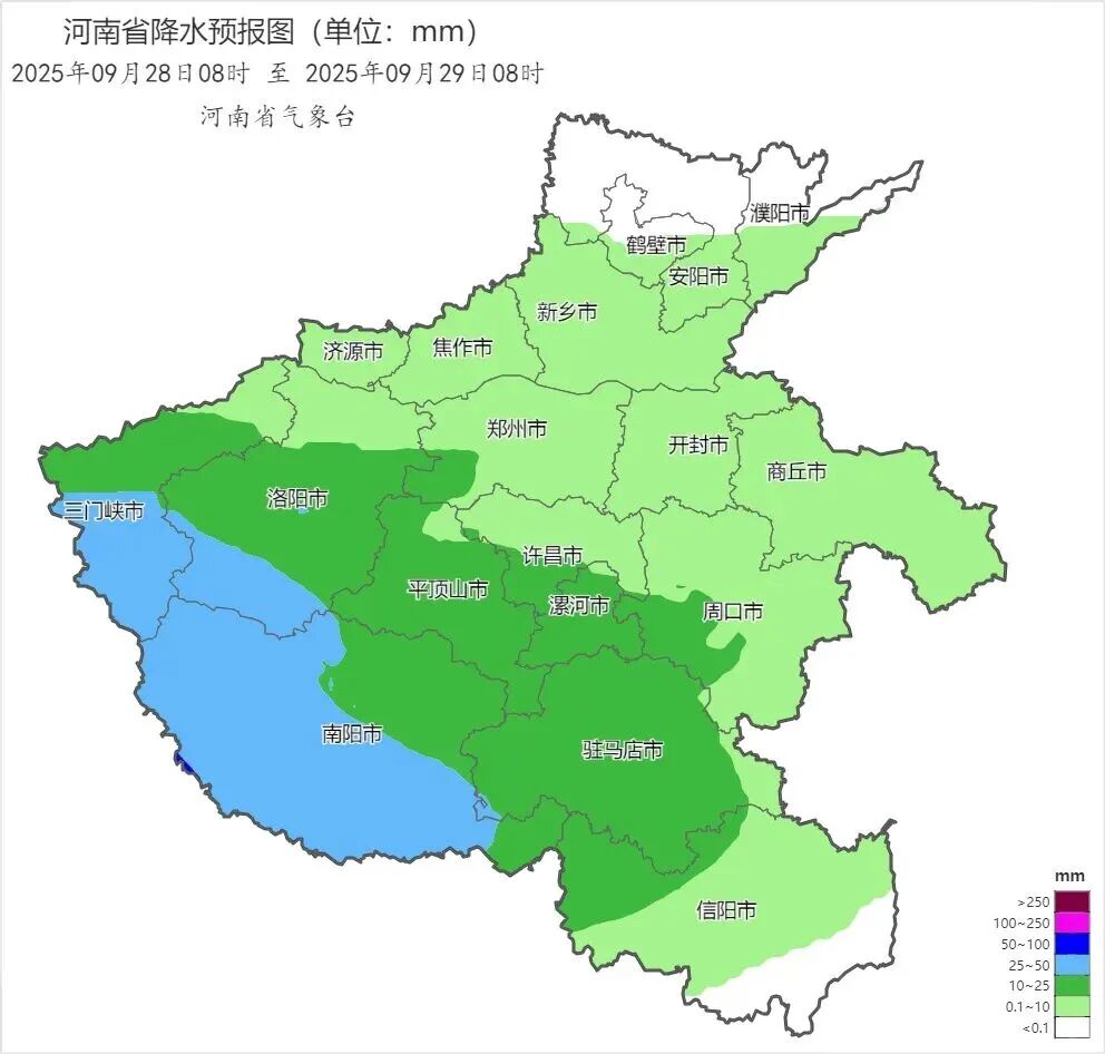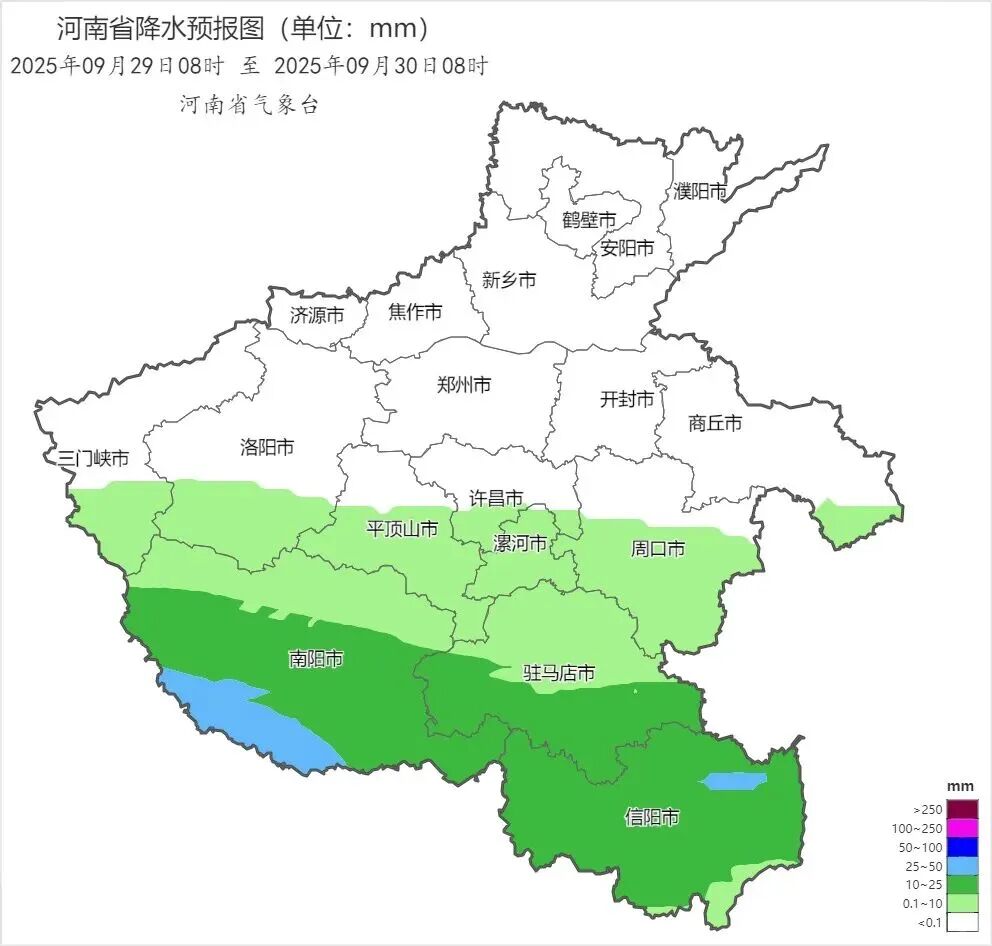 今天夜裏,全省陰天,大部有小雨或零星小雨,三門峽南部、洛陽南部、平頂山、許昌、漯河、周口南部、南陽、駐馬店、信陽北部部分縣(市、區)有中雨,局部大雨或暴雨。