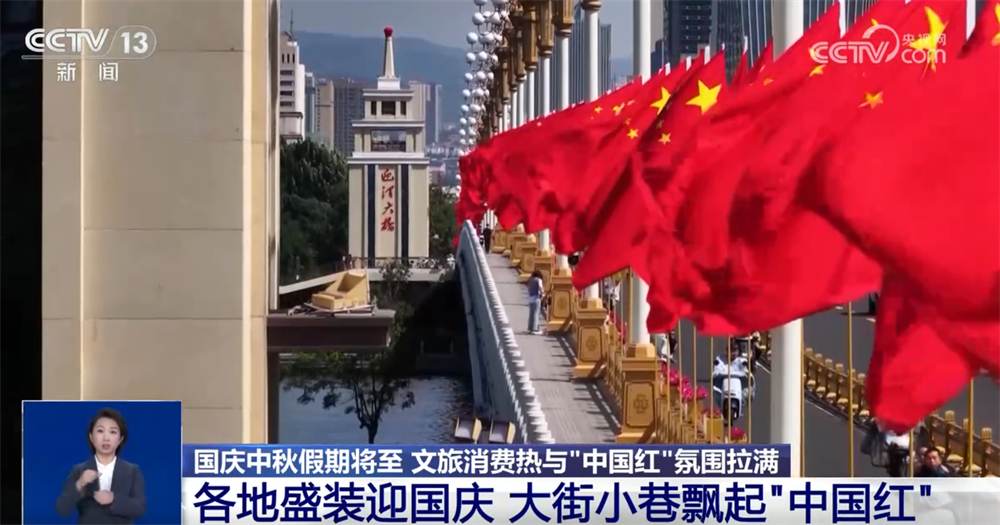 央視網消息: 當秋日的風開始裹着桂香的甜,秋日的陽光也鋪展了人們對國慶假期的期待,撥動心絃。再過幾天就是國慶節了,這兩天,在大江南北,在街頭巷尾,正醖釀着盛大的一抹紅色。