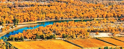 金秋時節,庫車市塔里木胡楊林絢爛如畫,金黃的胡楊林倒映在靜謐的水面上,構成一幅迷人的秋日畫卷。