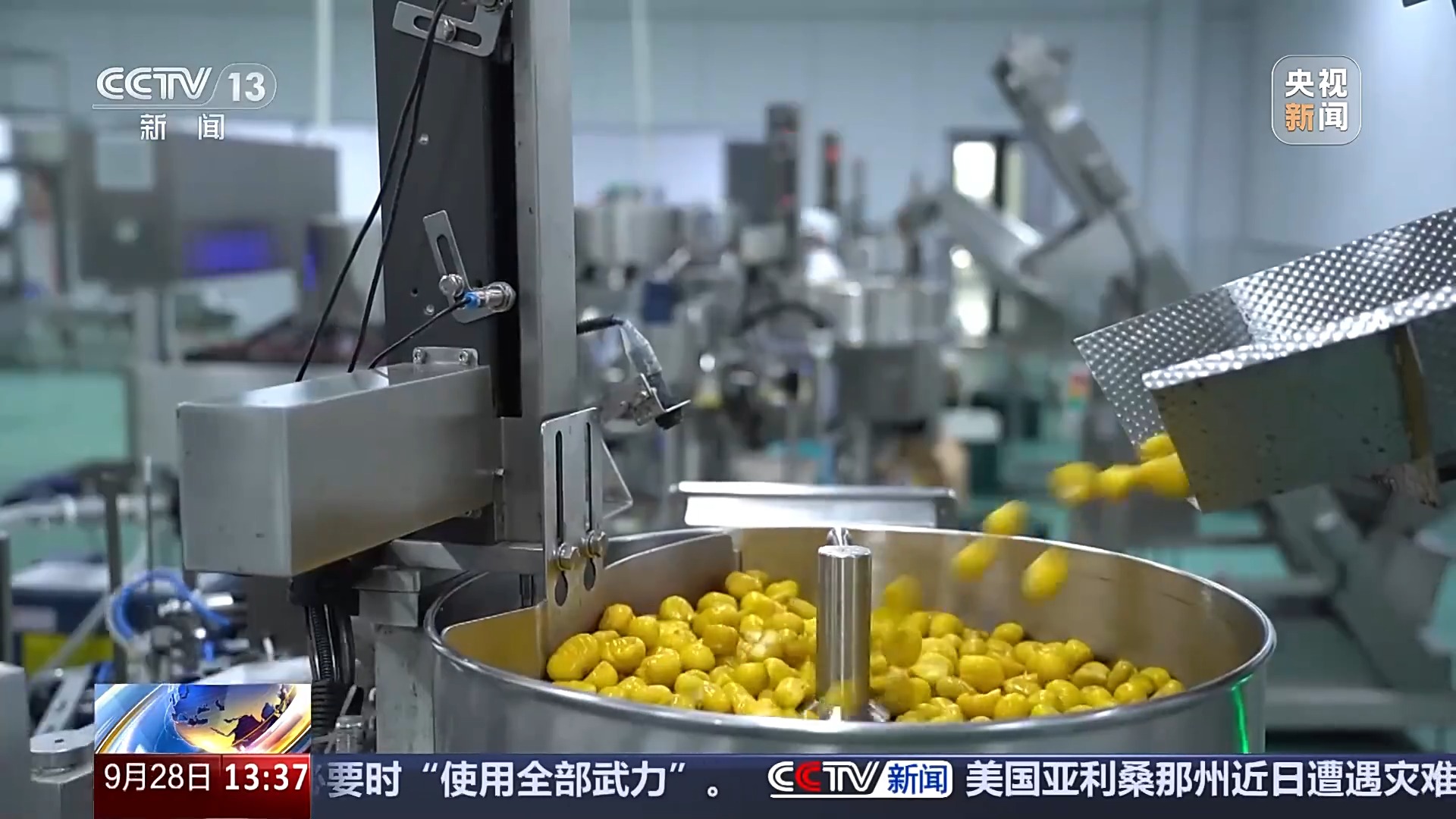 與此同時,板栗加工廠也在忙着趕訂單。新鮮收穫的板栗可以做成袋裝零食,附加值更高了。