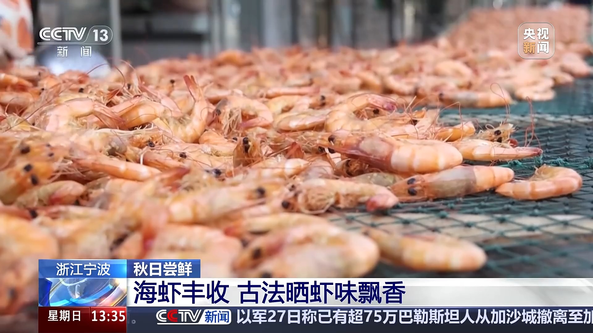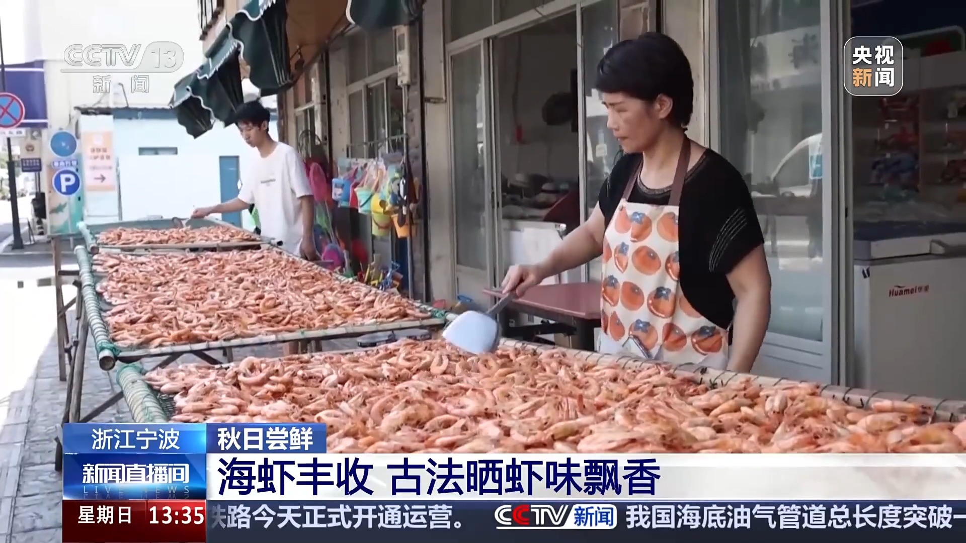 眼下,正是海蝦豐收季。在浙江寧波市寧海縣強蛟鎮,村民們沿用古法將新鮮海蝦製作成蝦乾,曬出的蝦乾供不應求,眾多遊客前來採購。