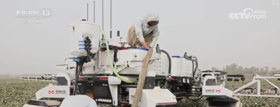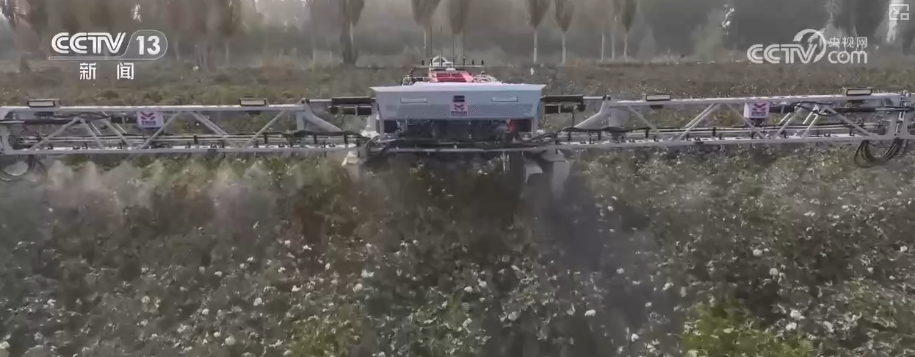 眼下,新疆南部棉花生長正值關鍵的脱葉作業期。在塔克拉瑪干沙漠北緣的阿拉爾市,當地運用大型智能機器人進行脱葉劑噴施,助力後續棉花大規模機械化採收。