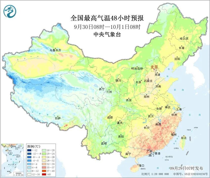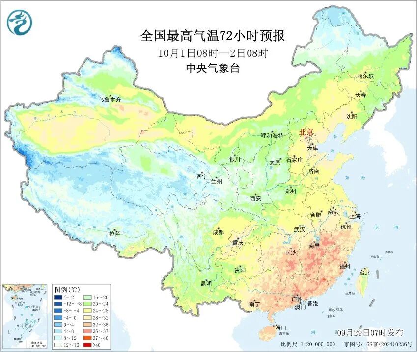 今天至國慶假期前半段,影響我國的冷空氣勢力弱,中東部大部氣温偏高,華北、東北多地白天最高氣温將超過25℃,最低氣温在15℃以上。未來幾天,北京、瀋陽最高氣温在28℃左右,總體體感温度適宜,以晴天居多。