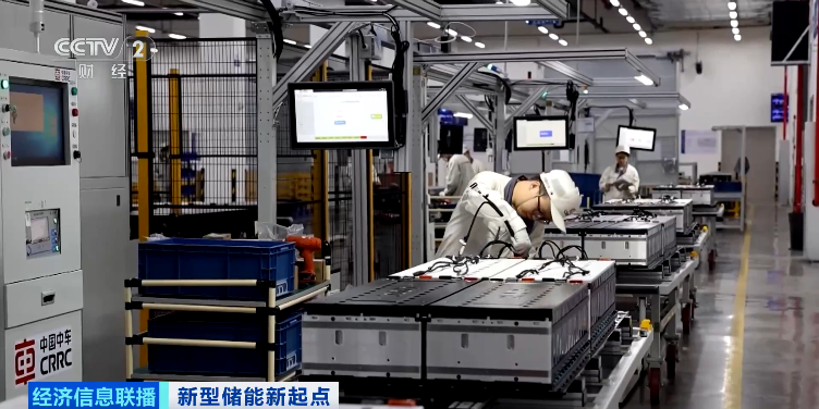 總枱央視記者 平凡:我現在是在北京一家儲能設備的生產企業,目前整條生產線處於滿產的狀態,而這個就是儲能的關鍵部件電芯,一塊這樣的電芯可以存儲一度電左右。由於儲能市場的火爆,目前這樣的電芯處在供不應求的狀態。