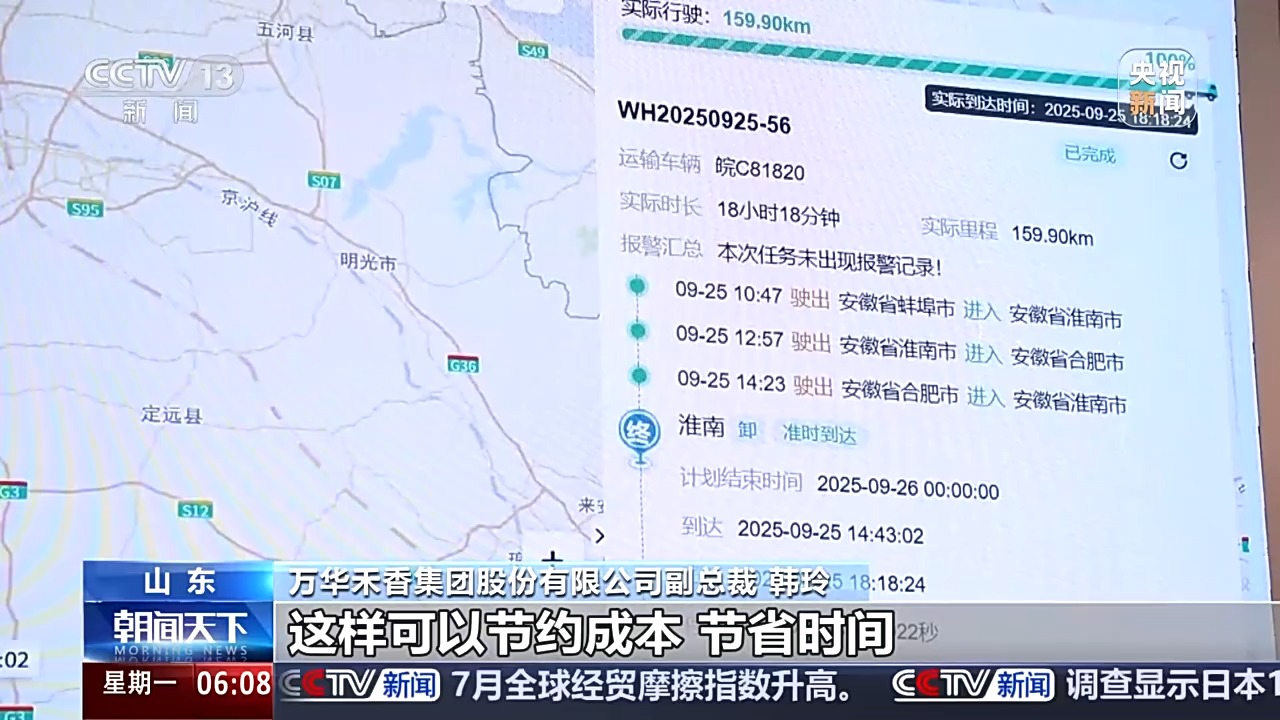 *萬華禾香集團股份有限公司副總裁 韓玲:*對於固定的線路,我們有大量的數據支撐之後,方便我們的司機對整個運輸的線路做一個最佳路徑的選擇,這樣可以節約成本,節省時間。