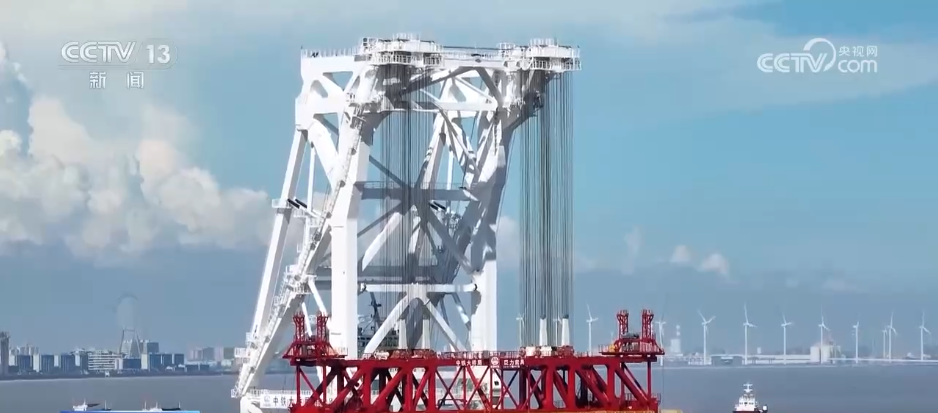 破紀錄的長度和重量帶來了施工上的難度。為了順利完成“梁王”及後續208片同等規格的箱梁海上運輸、架設任務。施工方特意調來了曾參與過杭州灣跨海公路橋建設的“天一號”運架一體船。同時,打造數字孿生系統,通過在船體、臂架和吊具上佈設的85組智能傳感器,即時對船舶狀態、吊裝動作、結構受力等10多類數據進行秒級反饋和智能監控,實現架樑全過程風險管控。