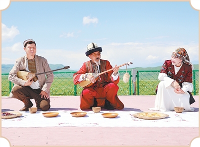 新源縣藝人在那拉提景區演奏傳統樂器。