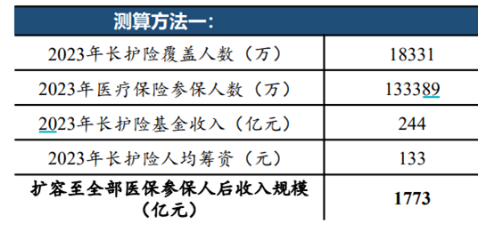 華福證券則判斷,假設按當前籌資水平擴展至全體醫保參保人,長護險收入規模預計為1773億元;假設長護險收入佔醫保基金收入比例達到美、日、德、法的平均水平,此情況下長護險收入規模預計為6333億元。