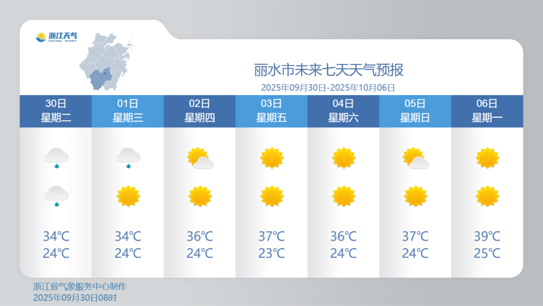 10月7-8日:全省晴到多雲,其中浙北地區午後有分散性雷陣雨。