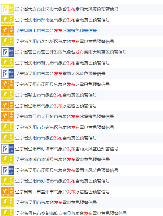 速看!暴雨、冰雹、雷電大風!遼寧多地發佈天氣預警信號!