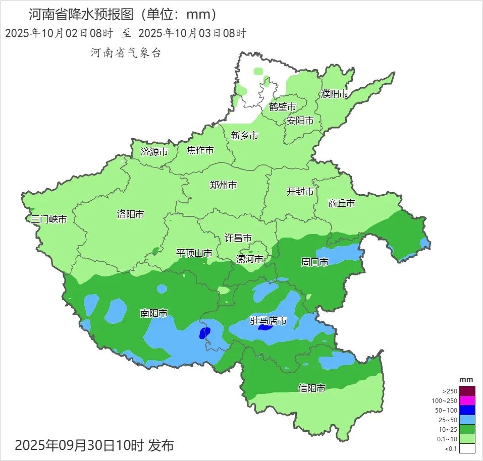 10月2日,全省陰天,大部有小雨或零星小雨,東部、南部有中到大雨,局部暴雨。