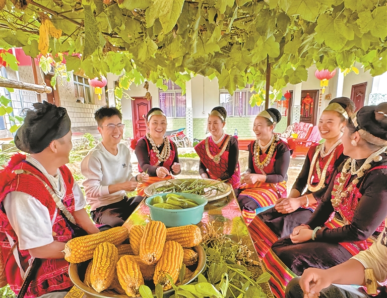 林芝市察隅縣下察隅鎮新村駐村幹部入户到當地僜人羣眾家中,輕鬆愉快地拉家常。記者 白瑪澤旺 次仁平措 攝