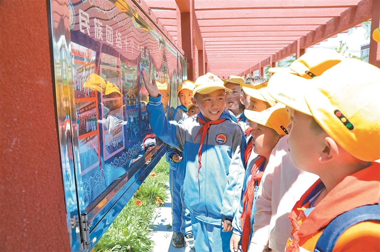 拉薩市墨竹工卡縣南京實驗小學學生參觀“民族團結教育主題公園”主題苑。記者 唐斌 通訊員 洛克 攝