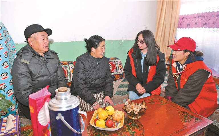 拉薩市城關區策門林社區的工作人員正在與轄區內的民族團結家庭嘮家常。記者 唐斌 攝