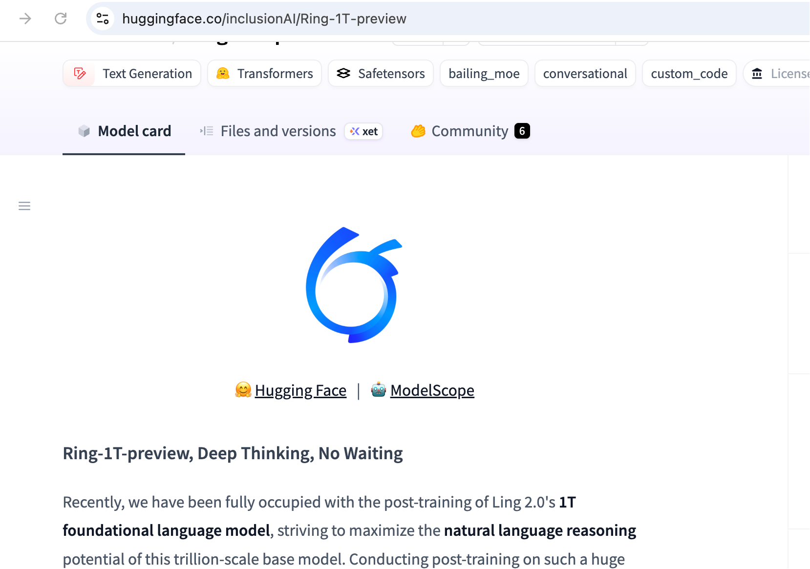 【環球網科技報道 記者 李文瑤】9月30日凌晨,螞蟻集團研發的首個萬億參數大模型Ring-1T-preview在Hugging Face上線,該模型是一款自然語言推理大模型。