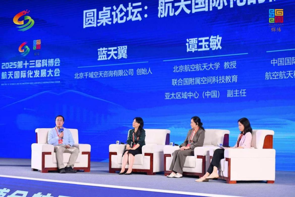 北京千域空天諮詢有限公司創始人藍天翼與北京航空航天大學教授、聯合國附屬空間科技教育亞太區域中心(中國)副主任譚玉敏,中國國際經濟技術合作促進會航空航天科技工作委員會秘書長荊宇虹,以及ABI Research研究諮詢師Rachel Kong共同就航天國際化的機遇、挑戰與共贏路徑展開深入研討。