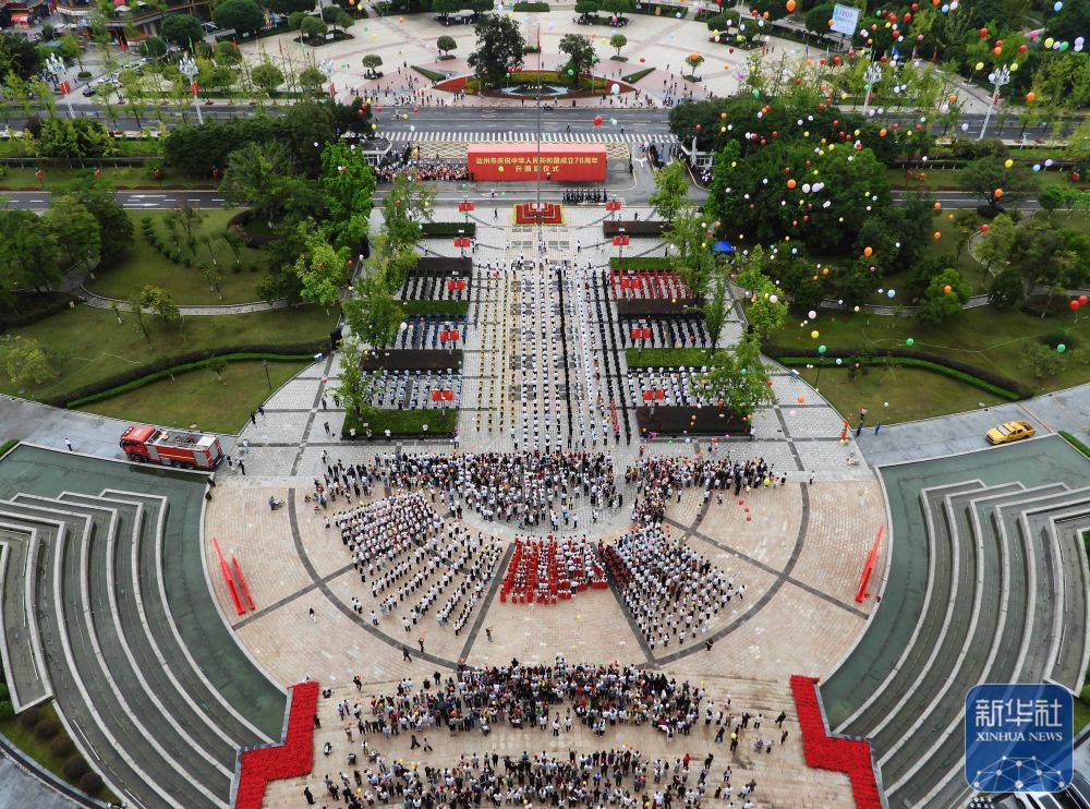 ↑ 10月1日在四川省達州市人民廣場拍攝的升旗儀式。新華社發(鄧良奎攝)