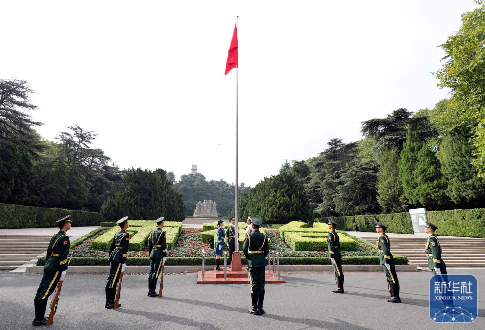 ↑ 10月1日,南京雨花台烈士陵園舉行升旗儀式。新華社發(丁亮攝)