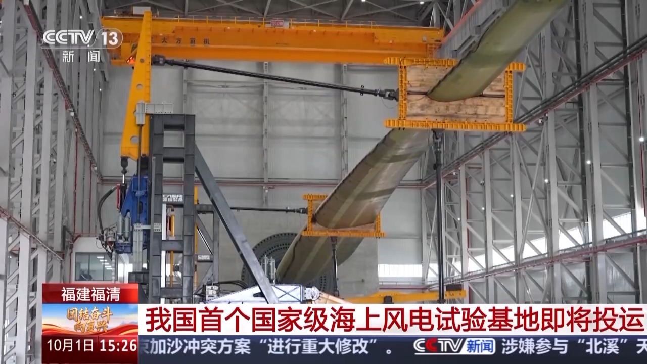 *總枱記者**黃珊:*海上風電試驗基地包括陸上檢測中心和試驗風電場兩部分,陸上檢測中心坐落於福清市的江陰產業園內,靠近江陰港碼頭,旁邊是福建最大的風電產業園。整個陸上檢測中心包含了葉片試驗平台和傳動鏈測試平台。