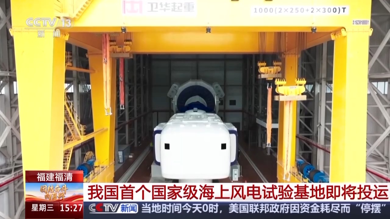 *國家級海上風電研究與試驗檢測基地建設現場負責人 王瑞:*前不久,我們剛剛完成了26兆瓦海上風電機組的檢測,下一步將有更多新型機組來到這裏。基地的建設,填補了我國大容量風電機組地面試驗檢測能力的空白,對我國引領風電行業標準、構建新型能源體系、推進海洋強國戰略都有非常重要的作用。