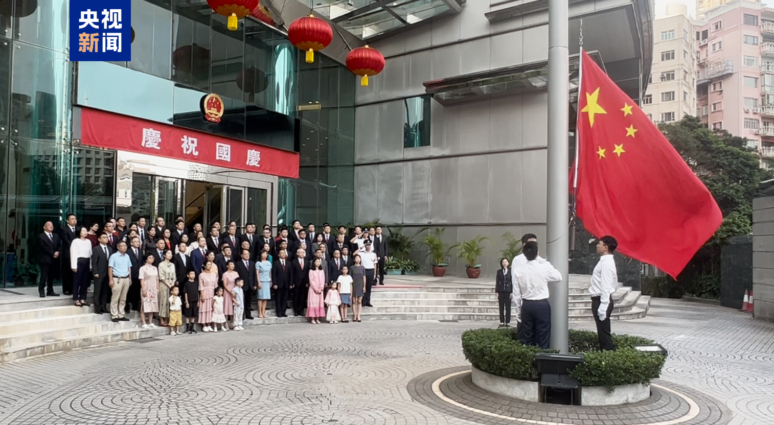 △10月1日7時,中央人民政府駐香港特別行政區聯絡辦公室舉行升旗儀式,慶祝新中國成立76週年。