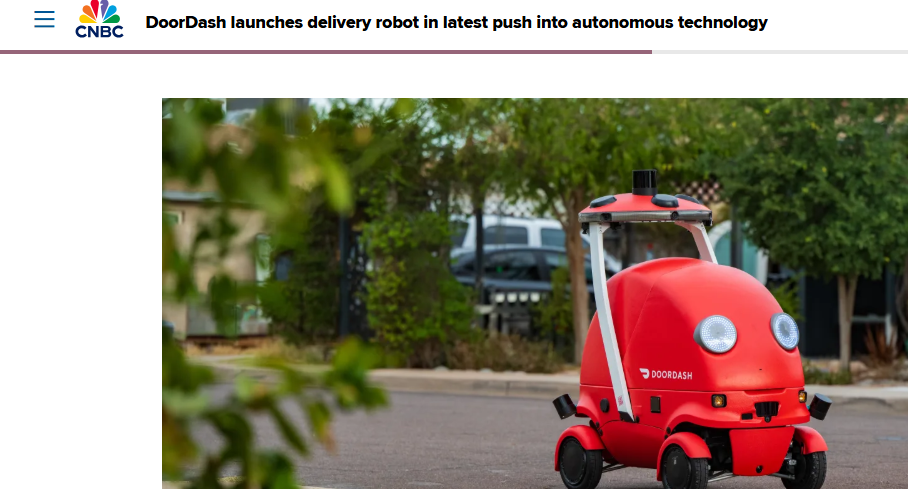 美國外賣巨頭DoorDash宣佈推出首款送餐機器人