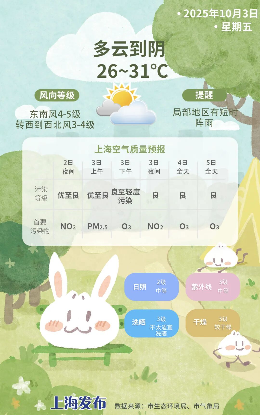 *10月4日(週六):*多雲到陰有短時陣雨轉多雲,25~31度