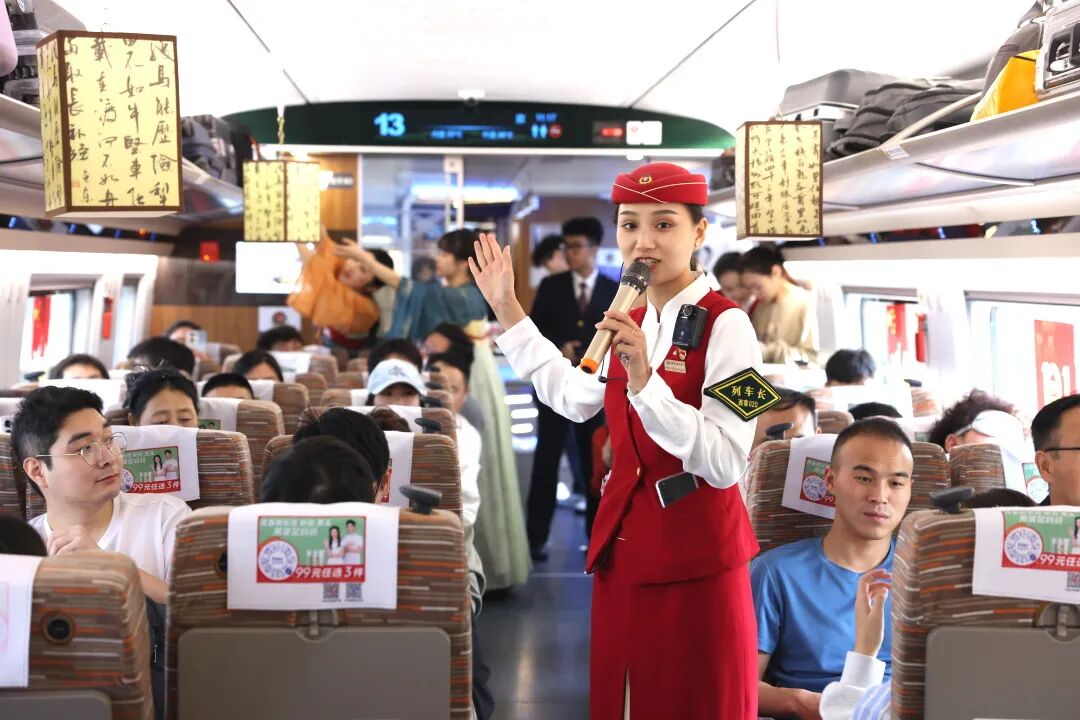 “當唐詩在車廂裏響起,當家國情懷在旅途中傳遞,我們看到了文化傳承的力量。這是鐵路服務與文化傳播的深度融合,我們將繼續探索創新。”西安客運段列車長劉晨説。